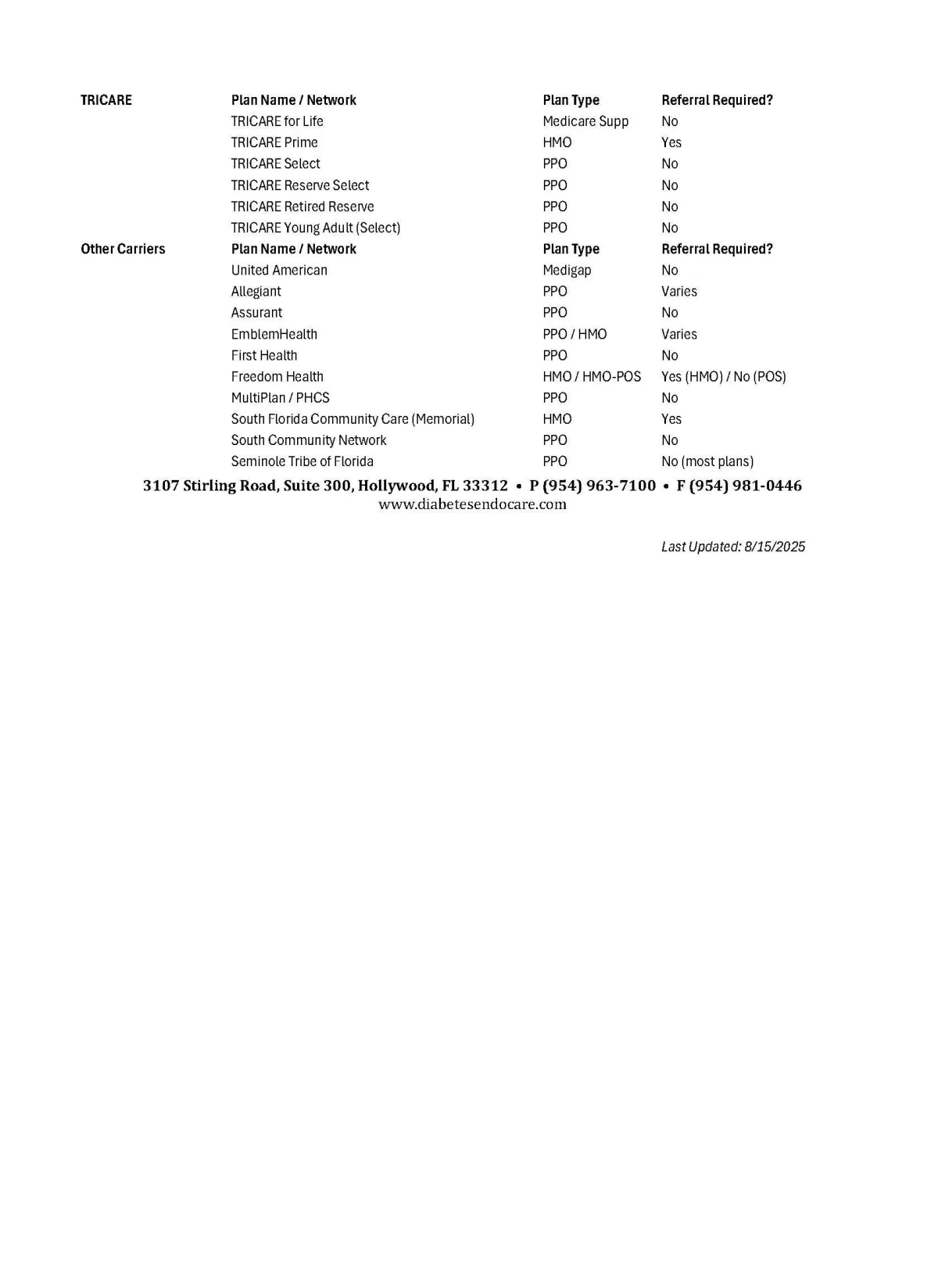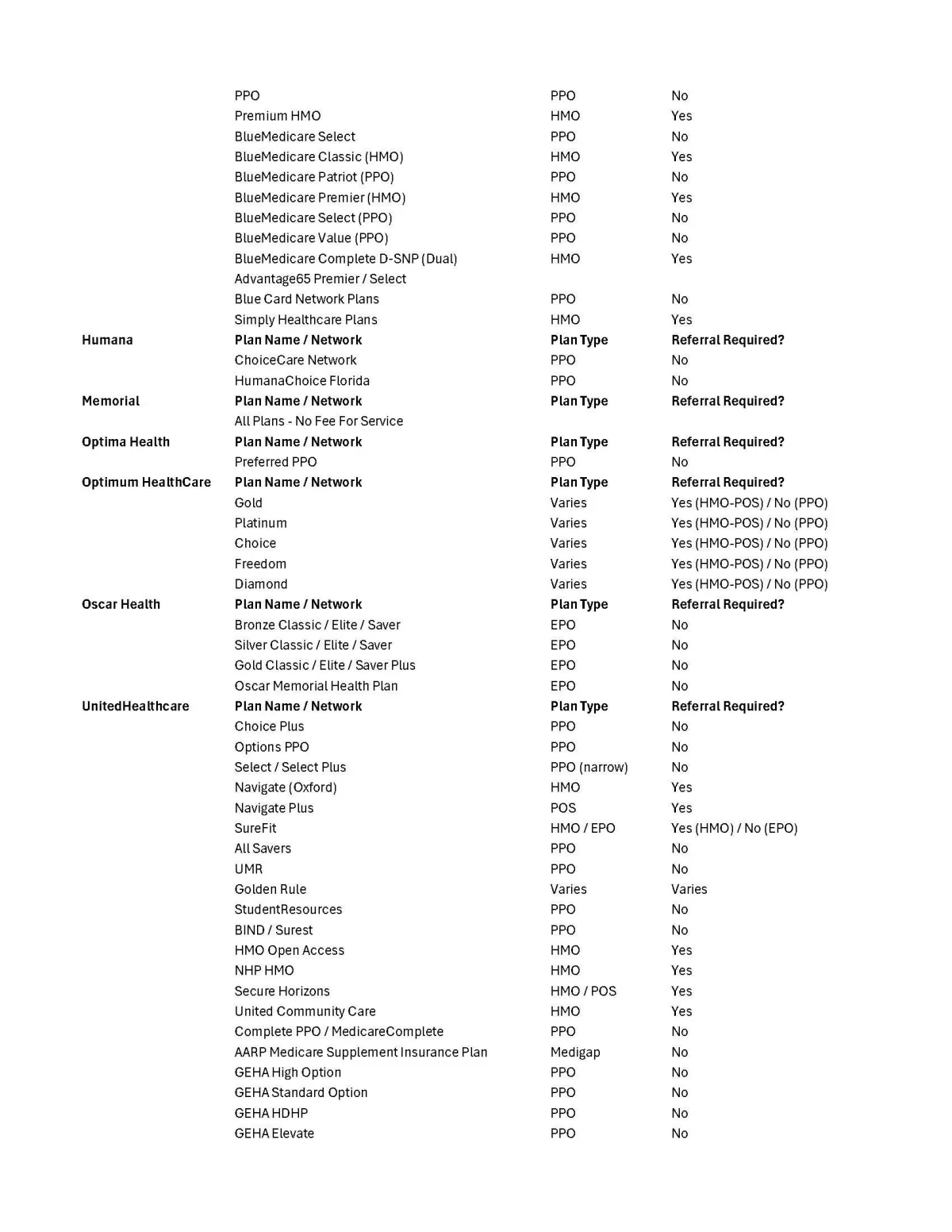 Networks we are NOT a part of include, but are not limited to Humana Gold Plus, FloridaBlue MyBlue, UHC Preferred Care Network & Preferred Care Partners.